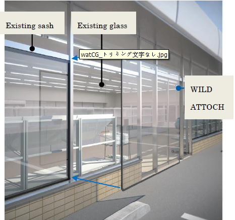 Tokyo, May 19, 2014 - AGC (Asahi Glass Co., Ltd.; Head Office: Tokyo; President & CEO: Kazuhiko Ishimura) announces that it will release WILD ATTOCHTM, Low-E glass ideal for energy-saving renovation of single-story retail buildings, in the Japanese market. WILD ATTOCH is heat-insulating/ shielding Low-E glass with excellent energy-saving and solar radiation control performance. The special feature of this product is that the installation is done from outside of the building. By adding a layer of Low-E glass to the existing windowpane from outside, WILD ATTOCH will reduce annual air-conditioning use by 37.7%*1. Also, the external installation method enables retails shops to do energy-saving renovation without closing the store or removing the products displayed by the windows.