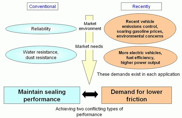 With this new product, NSK has achieved significantly reduced friction, which can lower fuel consumption, while maintaining sealing performance by applying techniques for analyzing seal geometry and simulation evaluation technology.