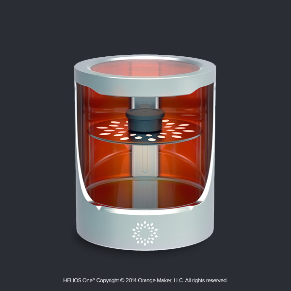 Orange Maker's first prototype, the Helios One is currently under development. The Helios One is cased in an aesthetic design that includes a silver body and a viewing window. "We believe artistic expression and people's desire to create will always be the driver of innovation in 3D printing." Farber said.