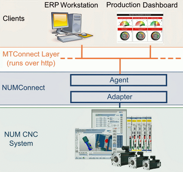 The underlying technology of the MTConnect standard is the same as that used by the World Wide Web. It is based an Extensible Markup Language (XML) for capturing data that is readable by both humans and machines, with the format of all data transfers defined by hypertext transfer protocol (HTTP). NUM's open architecture CNC systems already use similar software technology for their human-machine interface (HMI), which is based on HTML and JavaScript and employs standardised server functions to facilitate the exchange of data between the CNC kernel, PLC, drives and motors. As a consequence, NUMConnect can read anything that is capable of being displayed on the CNC system's HMI, regardless of whether it is in analog or digital format. Even detailed low level machine data, such as motor, drive or encoder error messages, can be retrieved and used for monitoring machine performance, preventative maintenance or diagnostics.