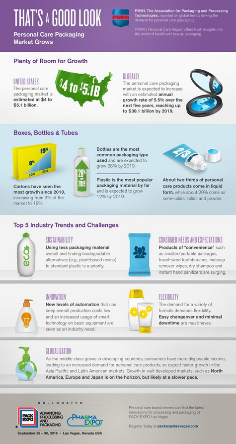 PMMI's latest study explores personal care packaging trends; PACK EXPO Las Vegas and Pharma EXPO 2015 deliver solutions.