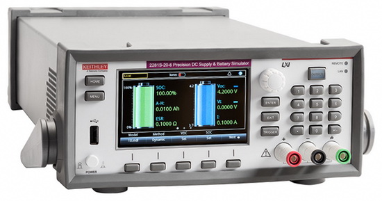 Unlike existing sources and power supplies that can only simulate a battery under one specific condition, the new Keithley 2281S battery simulator from Tektronix, offers the industry's first emulation of battery performance from full charge to total discharge using a battery model that includes state of charge, amp-hour capacity, equivalent series resistance, and open circuit voltage.