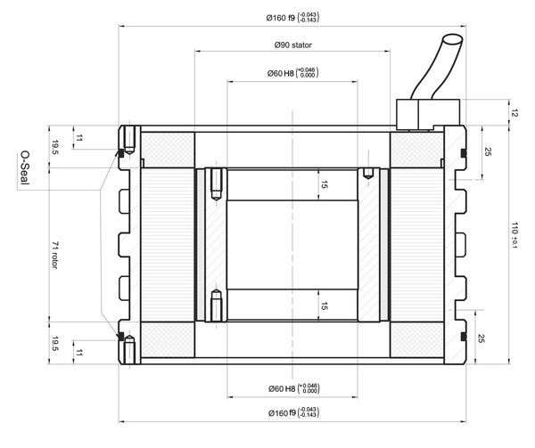 Like all direct drive motors, the TMX series units are capable of providing continuous torque even when stalled, and are designed for direct attachment to the load. This obviates the need for gearboxes or shaft couplings, to provide highly accurate, backlash-free rotary transmission. The rotor and frameless stator are supplied as component parts and are primarily intended for applications that require total integration of the motor within the servomechanism in order to reduce weight or volume. NUM's new TMX series motors can produce a very high S1 torque density and are available with a choice of stator and rotor lengths to best suit the motion requirements of the application. By way of example, a 140 mm diameter motor with an active length of 70 mm can produce a peak torque of approximately 82 Nm at speeds up to 1,500 rpm, and a continuous (stall) torque of approximately 50 Nm.