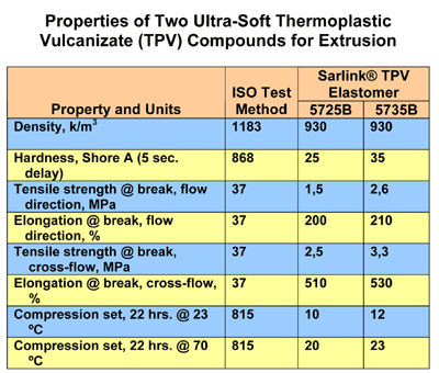 With Shore A hardness levels of 25 and 35, respectively, Sarlink 5725B and 5735B are the softest TPVs available for extrusion and exhibit the lowest compression set, thus providing outstanding elasticity similar to that of EPDM foam. Yet, unlike EPDM, the Sarlink compounds are thermoplastics, and as such they offer processing advantages that enable manufacturers of automotive sealing systems and building and construction profiles to reduce costs and achieve higher productivity.