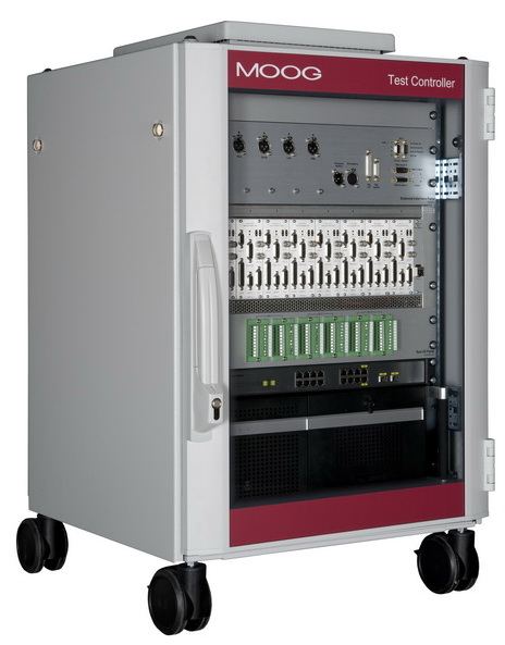 The test system includes a 10-channel Moog Test Controller, the Moog Integrated Test Suite Software and additional Replication, Runner, Random Vibration and Sinesweep software modules.