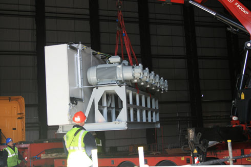 The power unit, comprising six Moog RKP Radial Piston Pumps, has an installed power of 675 kW, delivering a flow of 1,200 lpm (317 gpm US) at a pressure of 280 bar (4061 psi). A dedicated PLC controls and monitors the performance and health of the unit and a water cooling system maintains the temperature of the hydraulic fluid. High pressure hydraulic fluid is circulated around the facility by a custom designed distribution network.