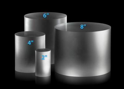 Hyperion is at volume production levels and can supply 50mm, 100mm, 150mm, and 200mm (2", 4", 6", and 8") diameter cores, epi-ready wafers, and PSS wafers. More information is available on www.hyperion-gc.com.