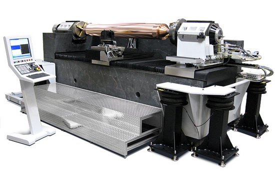 This machine is available in two versions: the Nanotech HDL2000 and HDL2000-HD. These are extra large capacity ultra-precision machining system used for single point diamond turning advanced optical surfaces along the diameter of large generation drums. This machine accepts drums up to 550mm diameter (600mm on HD version) and 2600mm long (between chuck faces) with a weight capacity of 1800 Kg (3000 Kg on HD version). Maximum optical cutting zone length is 2000mm.