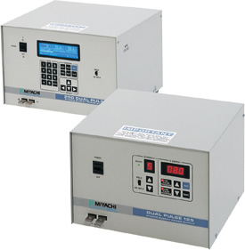 Designed specifically for precision resistance welding applications, the Dual Pulse Series capacitive discharge power supplies are microprocessor controlled, store multiple weld schedules, and provide consistent weld energy to the parts being joined. The DP Series welders deliver high peak energy with fast rise times. This is especially important when welding highly conductive materials such as copper and brass. The control system provides a highly stable output, independent of line voltage fluctuations, resulting in repeatable energy delivery from weld to weld. The DP Series'' short weld times result in minimal part deformation and marking.