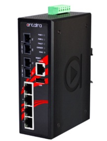 Antaira?s LMX-0602-M is a 6-port industrial managed Ethernet switch that is embedded with 4*10/100Tx fast Ethernet ports and 2*100Fx SC fiber connectors with multi-mode 2Km support. It is a Layer 2 full manageable Ethernet switch pre-loaded with user friendly web management console design. It supports Ring Network Redundancy function with market open standard ITU-T G.8032 ERPS (Ethernet Ring Protection Switch) protocol <50ms network recovery time. The advanced network Filtering and Security functions, IGMP, VLAN, QoS, SNMP, Port lock, RMON, ModbusTCP, and 802.1X/HTTPS/SSH/SSL increase determinism and improve network management for remote SCADA systems or control network. The LMX-0602-M is a high performance industrial managed Ethernet switch with a compact size, IP30 rating, DIN-rail or wall mounting design, and standard operating temperature range from -10?C to 70?C. It provides high EFT and ESD protection for any industrial networking applications within Power/Utility, Water Wastewater, Oil/Gas/Mining, Factory Automation, ITS-Transportation, Security Surveillance and any other outdoor or harsh environment._______________________________________________Features:-4*10/100Tx RJ45 Ports and 2*100Fx SC Fiber Ports with Multi-Mode 2Km-Supports Network Redundancy: STP/RSTP/MSTP, and G.8032 ERPS (Recovery Time <50ms)-Supports IPv4/IPv6, and DHCP Option 66/67/82-Supports Modbus/TCP Protocol for Device Management and Monitoring-Configuration: Web Console, Telnet, CLI Command-IGMP v1/v2 for Multicast Traffic Filtering-QoS (IEEE802.1p/1Q), CoS/ToS to Increase Determinism-IEEE802.1Q VLAN for Easy Network Planning-Enhanced Network Security with IEEE802.1X, SNMP v1/v2c/v3, HTTPS, and SSH/SSL-Port Lock Function for Unauthorized Access Based on MAC Address Blocking-Auto Warning by Exception through E-mail, Relay Output-Support RMON Function for Efficient Network Monitoring-Support Port Mirroring for Online Diagnostic-Standard operating temperature -10?C to 70?C-5-Year Warranty