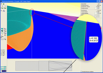 Afterwards, the tool cut on the machine corresponds to the simulated tool exactly. In this way, machine and wheel inaccuracies can also be found and dealt with.
