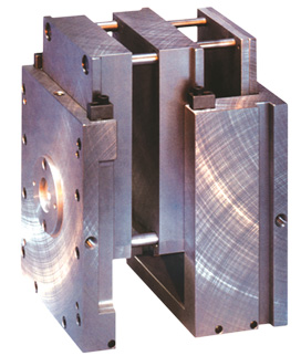 MUD Quick-Change H frames and Double H frames are designed for simultaneous molding with two or more companion insert molds. These insert molds can be interchanged independently. When single insert mold production is scheduled, blank insert molds are easily installed. Duplicate insert molds can be installed when greater volume of a part is required.