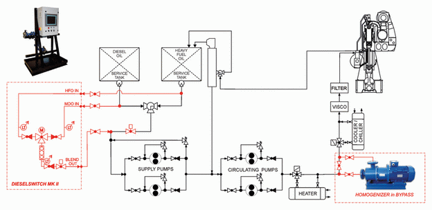 The purpose of the DIESELSWITCH MKII is to change over from high sulphur fuel to low sulphur fuel in a safe and automatic manner, and optionally to adjust blend fuel according to the permitted sulphur content in the relevant Emission Control Area (ECA).