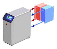 The Microgel® RCD series offers as standard the hydraulic potential of two Microgel® single zone RCM series machines in a single unit.It offers the possibility of operating at constant temperatures, flows and pressures which are different between the zones in a completely independent way. This version is capable of automatically dividing the cooling capacity according to the thermal load of each zone.