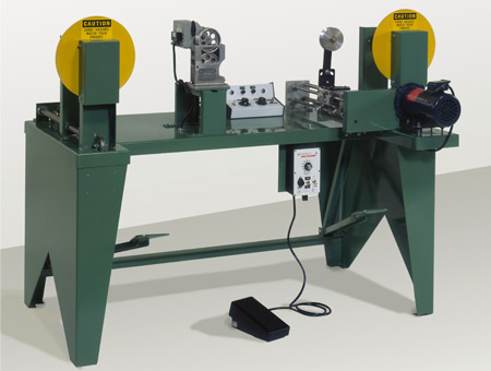 - Foot actuated slide/lock action automatically adjusts for spool width and bore size combination.