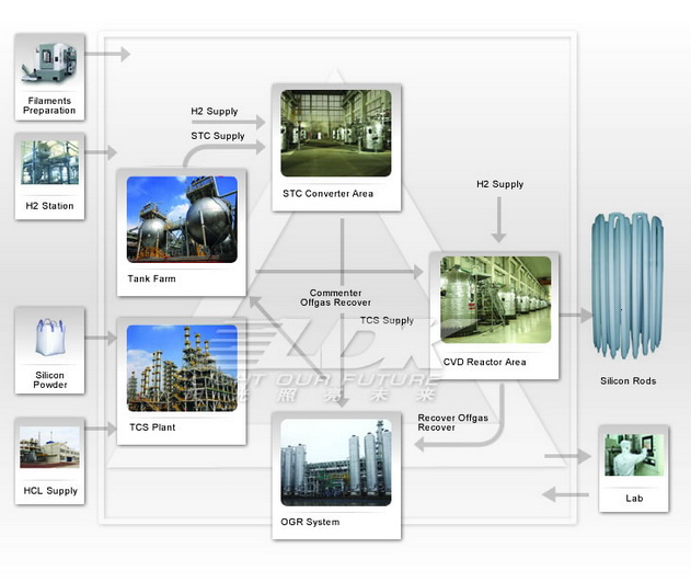 We use metallurgical silicon as a raw material to produce TCS, which is then used to produce polysilicon. This technology enables a high degree of hydrogen, HCI, TCS and STC to be recycled and re-used during the production process, thereby reducing waste output and lowering raw material cost. Our continuous closed-loop process is designed to increase production capacity per reactor, while reducing overall energy consumption and capital investment for a given level of production. Our advanced distributed control system, or DCS, improves production capacity and safety while reducing human-resource related operating expense. Our production process, including production, cleaning, packaging and transportation, conforms to relevant international standards and our comprehensive waste management system is compliant with national environmental protection standards.
